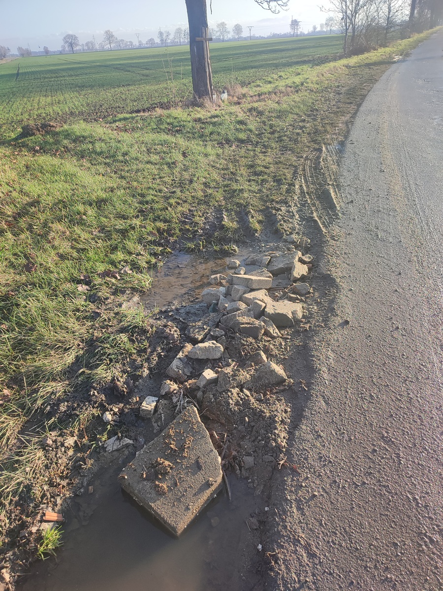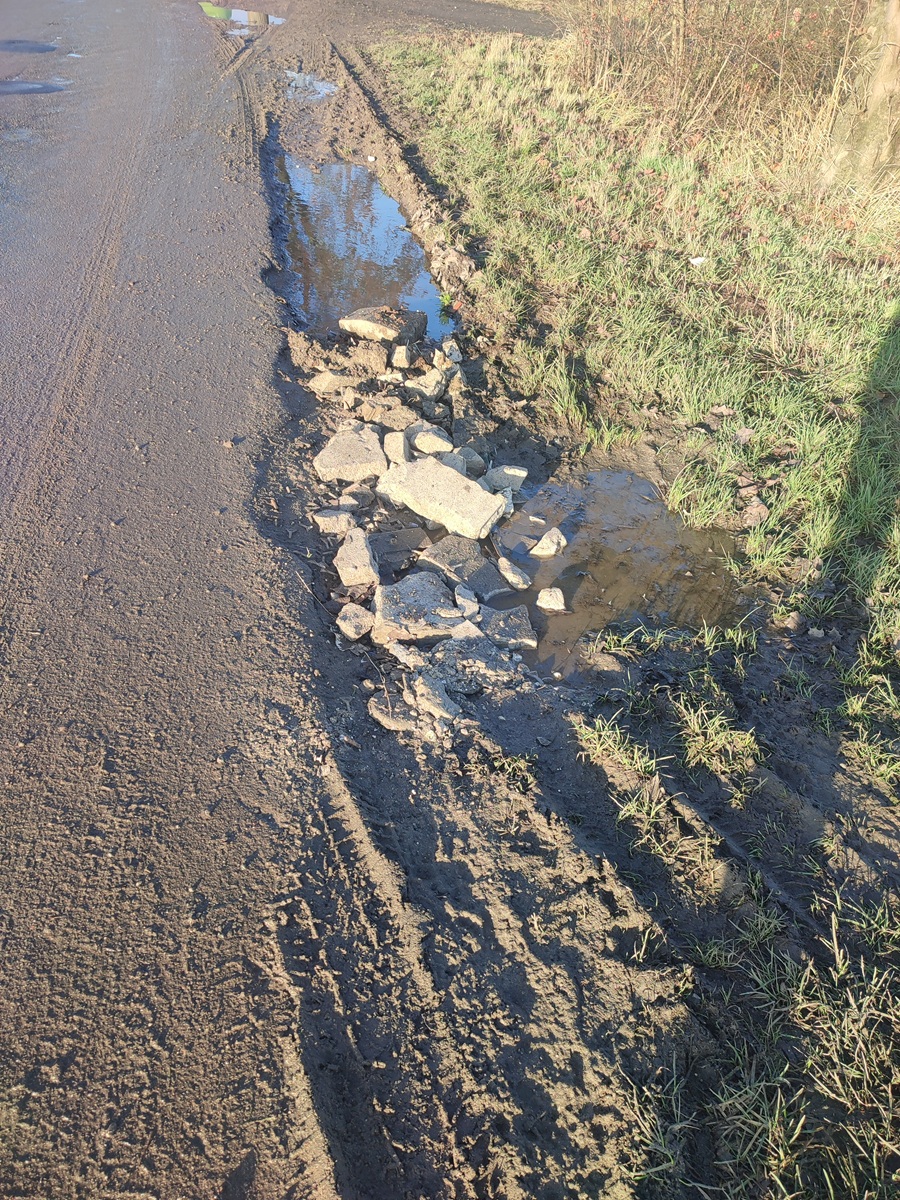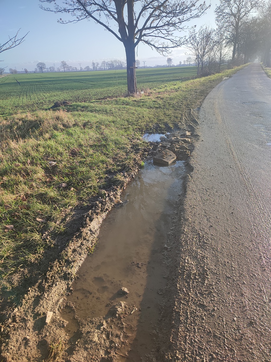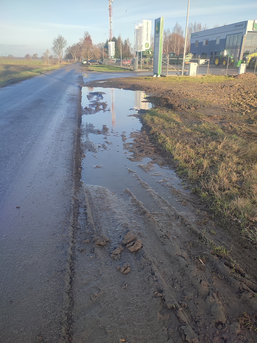 Nawiasem dodam, że nawierzchnia jezdni została znacznie poprawiona, ale tylko na odcinku od DK22 do podmiotu gospodarczego z maszynami rolniczymi, dalej jest uciążliwa. Problem poboczy występuje na całej długości i słuszną byłaby decyzja o poszerzeniu jezdni ponad pół metra, co odżywające kłopoty zażegnałoby na trwałe.